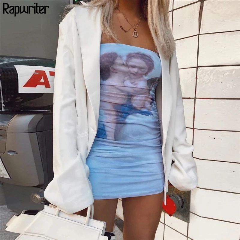 Rapwriter/повседневное тонкое платье на бретельках с принтом ангела для женщин; коллекция 2020 года; летнее базовое сексуальное мини-платье без рукавов; Vestidos mujer