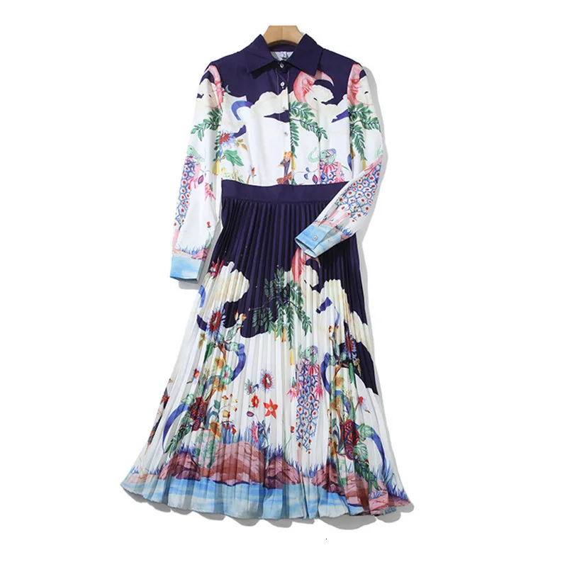 Винтажное женское осеннее платье с принтом, рубашка, женское элегантное платье средней длины для подиума, дизайнерские вечерние Плиссирова...