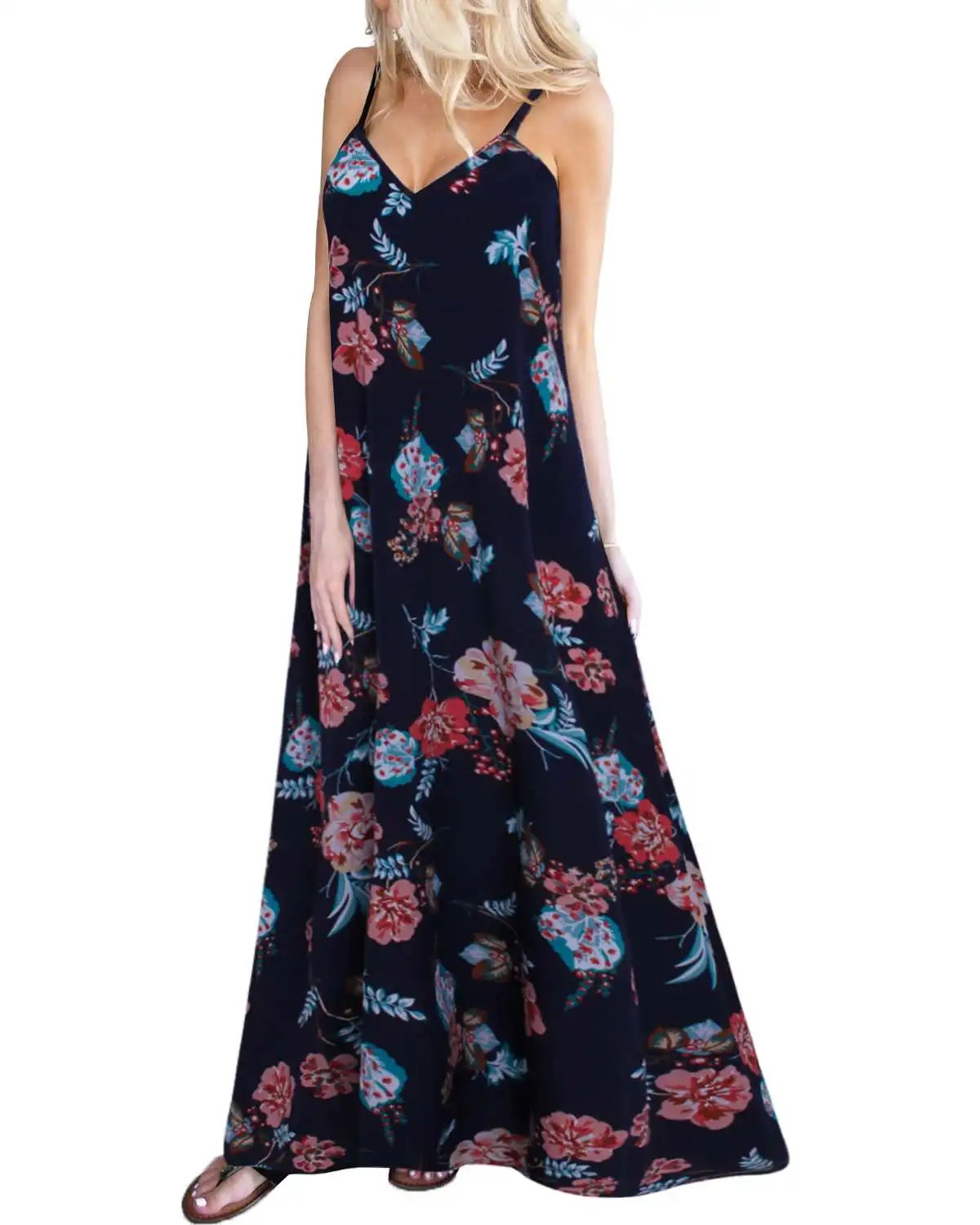 Женские богемные макси длинные платья 2019 лето повседневные свободные сексуальные женские с v-образным вырезом без бретелек без рукавов печ...