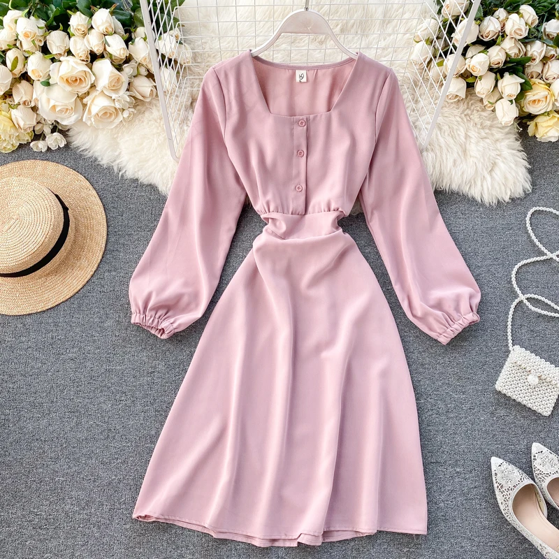 2020 винтажное тонкое весеннее платье миди на пуговицах, офисное осеннее платье с пышными рукавами, вечерние платья трапециевидной формы с завязками для женщин
