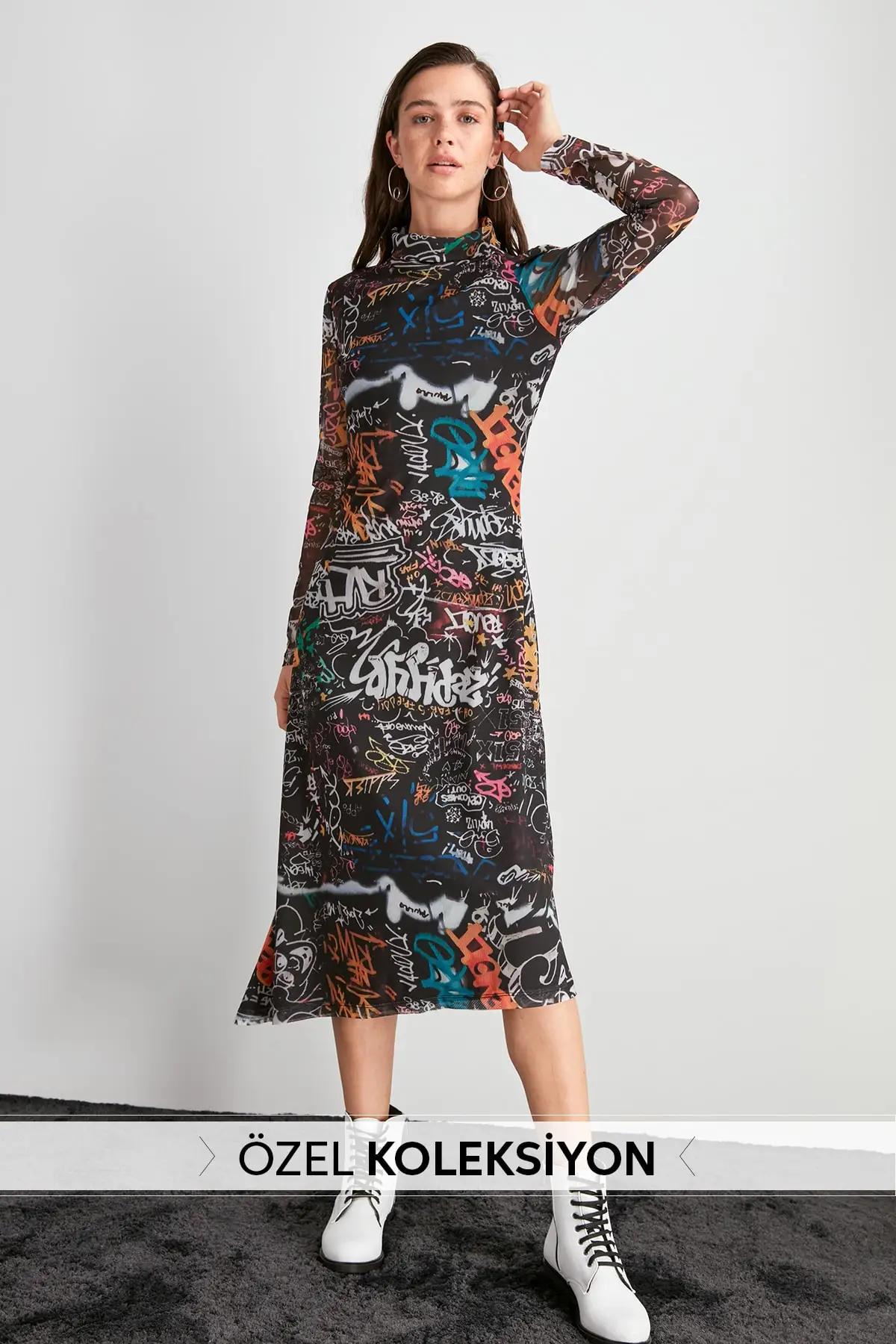 Платье из тюля с Trendyol узором TWOAW20EL2035