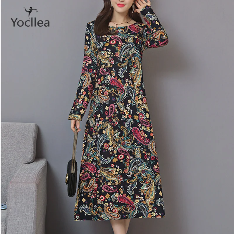 Осеннее платье зимнее длинное платье с цветочным принтом Boho пляжное платье туника Макси женское вечернее детское летнее платье ретро хиппи...