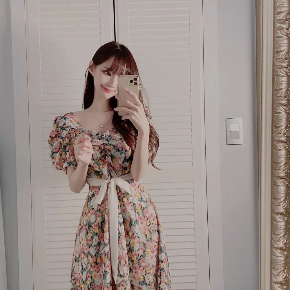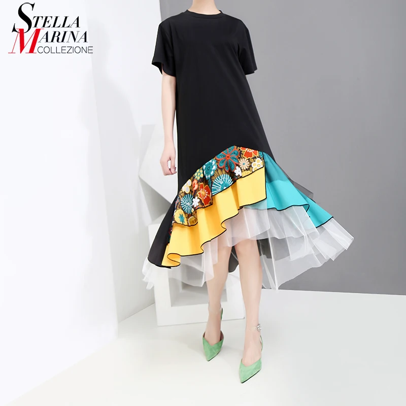 Новинка 2019, женское летнее черное платье трапециевидной формы в Корейском стиле, милое женское платье длиной до колена с цветным подолом, пл...