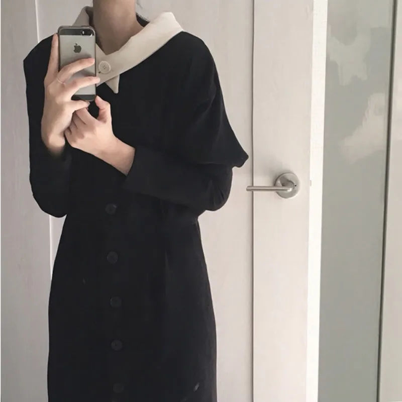 Для женщин Весна макси длинная рубашка платье одежда с длинным рукавом Хепберн Винтаж элегантный черный Vestidos плюс размеры роковой Sukienki