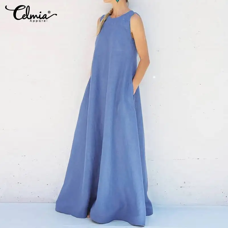 Женское летнее платье без рукавов, длинное платье макси, летнее платье больших размеров, повседневное свободное однотонное платье для вечеринки, модель 5XL, 2020
