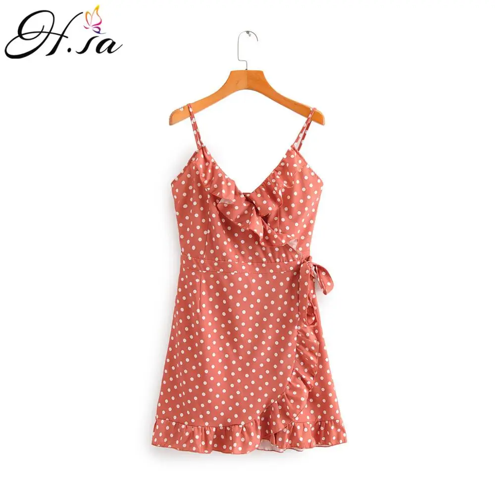 Женское мини-платье H.SA, винтажное платье в горошек без рукавов с открытой спиной и оборками
