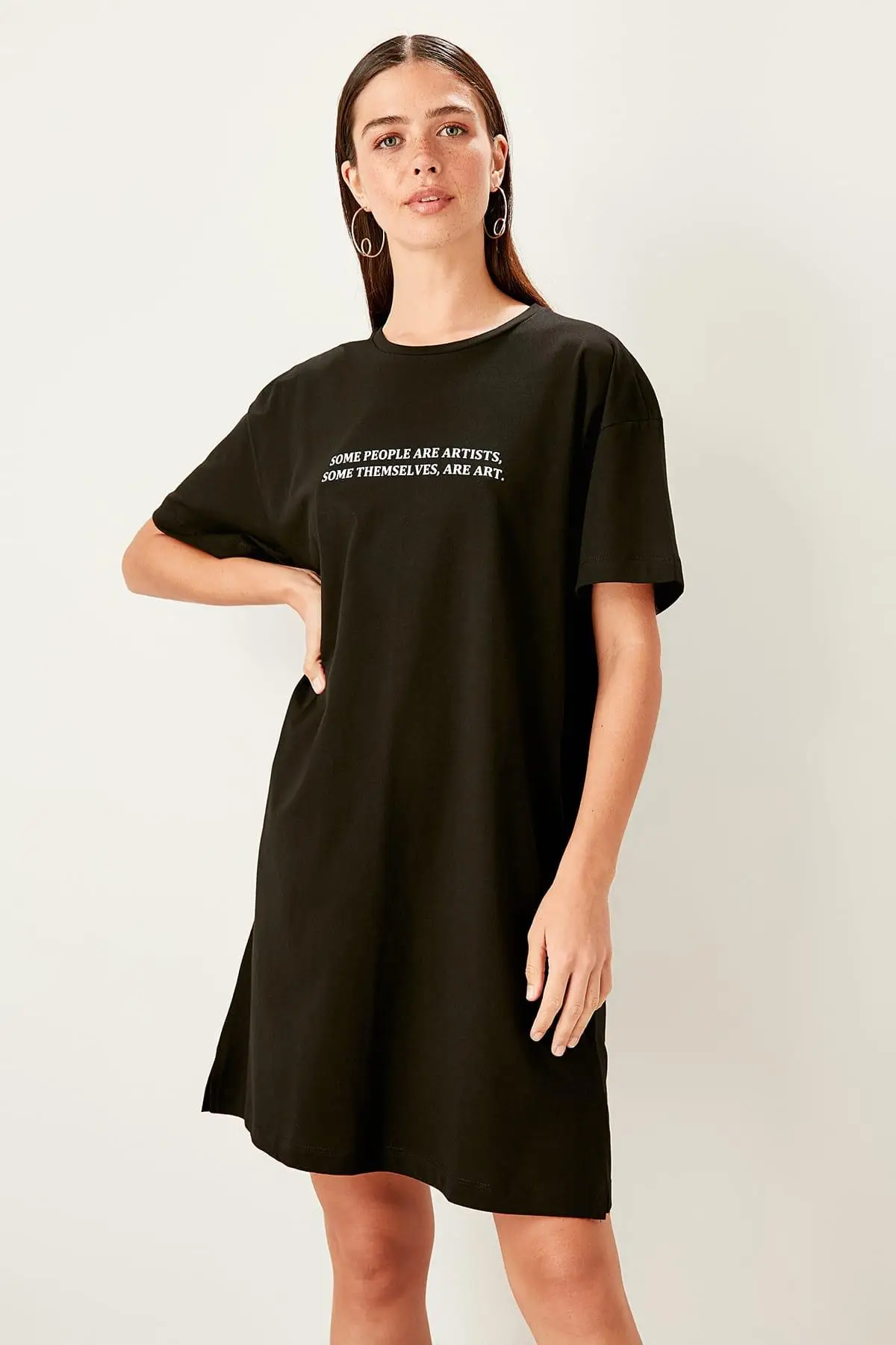 Trendyol черное трикотажное платье с принтом TWOSS19EL0232