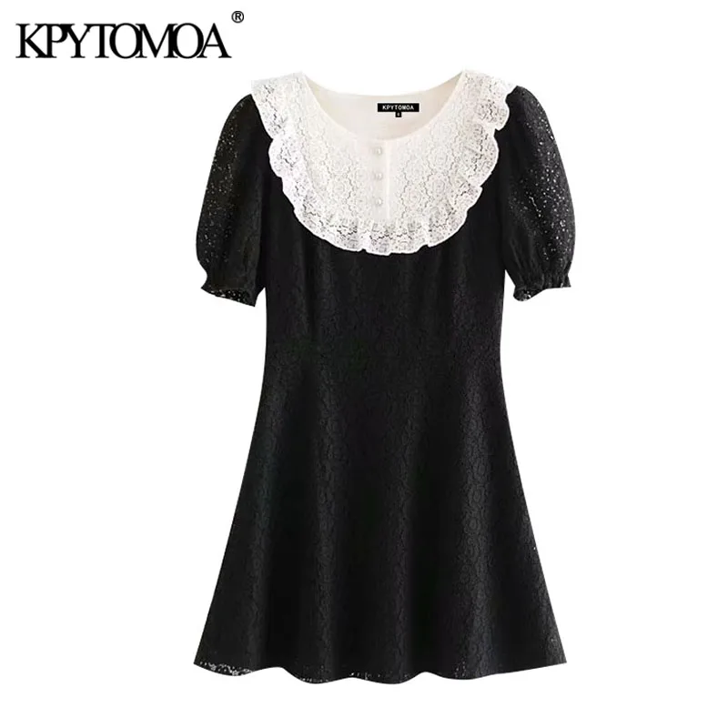 Женское кружевное мини-платье KPYTOMOA, винтажное платье с жемчужными пуговицами и коротким рукавом с подкладкой, модель 2020