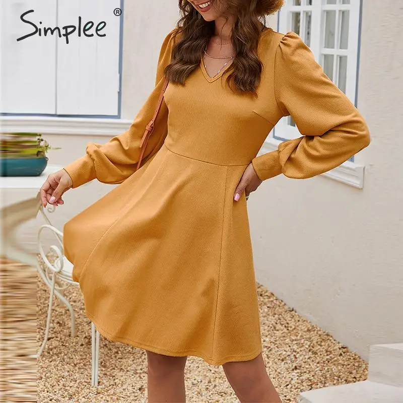 Simplee элегантное свободное короткое платье для вечеринки уличное яркое желтое платье с v-образным вырезом офисное женское осеннее шикарное платье для работы