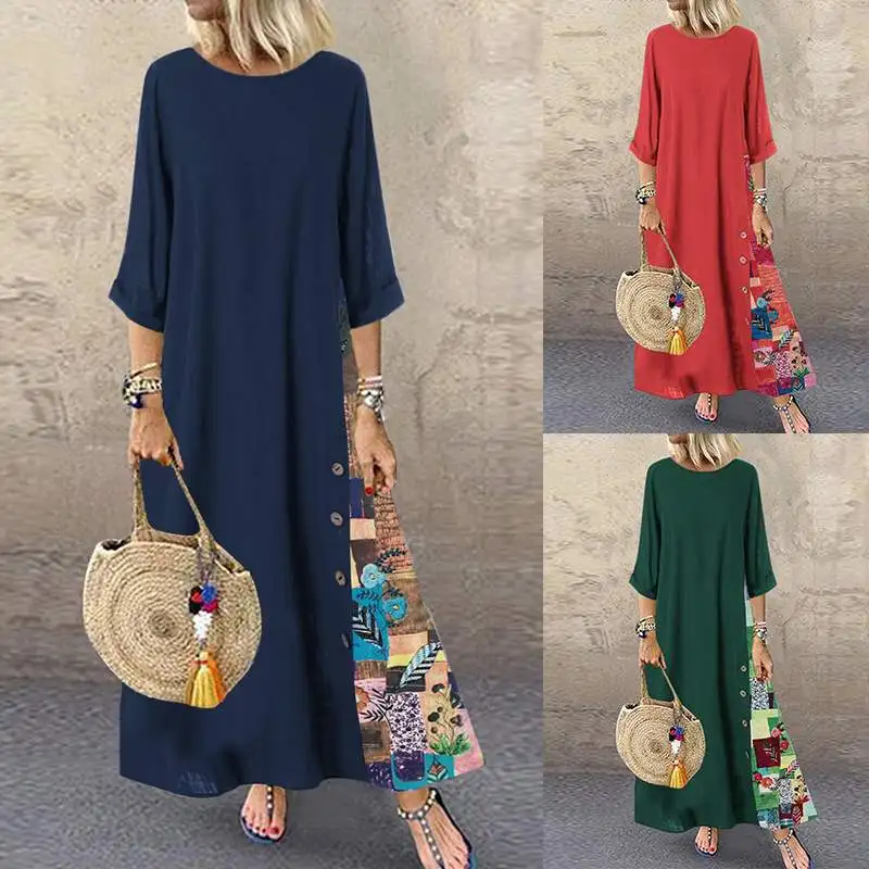 2019 ZANZEA женский сарафан с принтом элегантное платье макси 3/4 рукав вечерние платья женские цветочные повседневные платья негабаритные