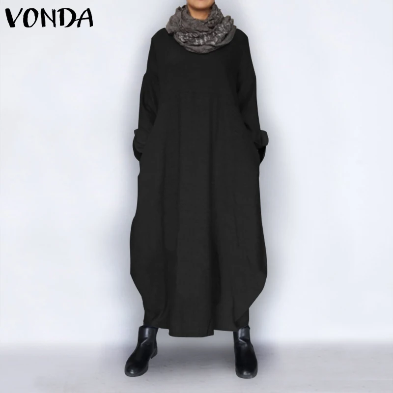 VONDA размера плюс, летнее платье 2019, женские винтажные вечерние платья макси с длинным рукавом, тонкое женское повседневное свободное платье