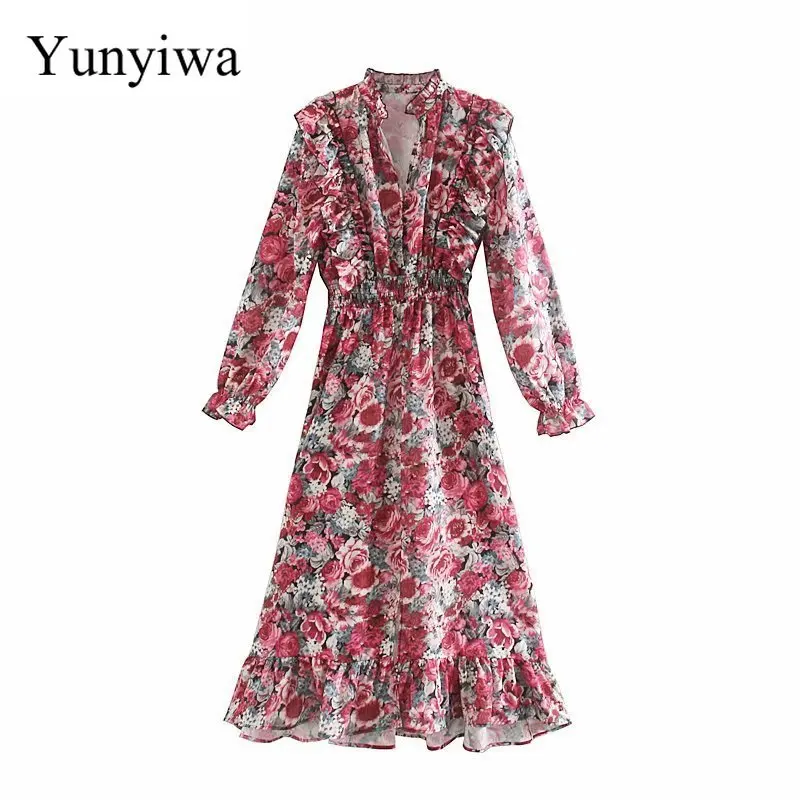2019 Для женщин новые наслоения Платье с цветочным принтом с завышенной талией в богемном стиле Повседневное сексуальное платье макси с длин...