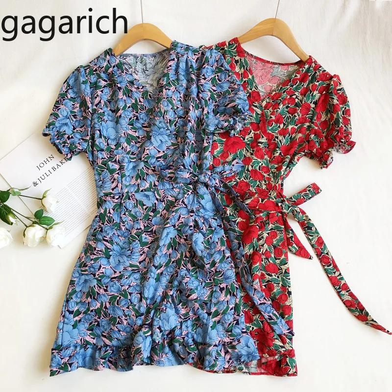 Gagarich, женское шифоновое мини короткое платье, летнее, v-образный вырез, короткий рукав, бандаж, Русалка, Vestidos, Женские винтажные платья с принтом