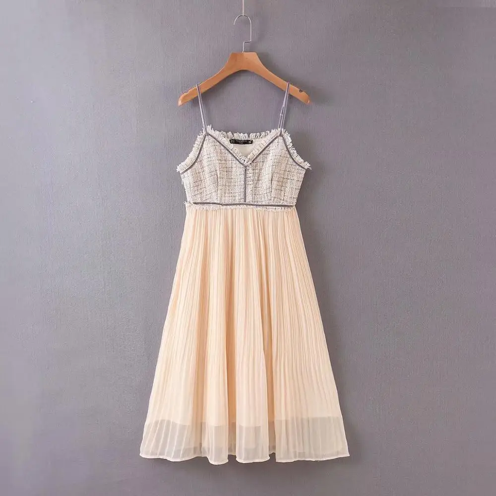 2020 женское элегантное твидовое лоскутное плиссированное платье на бретельках с v-образным вырезом, женское Повседневное платье с регулируемым ремешком DS3817
