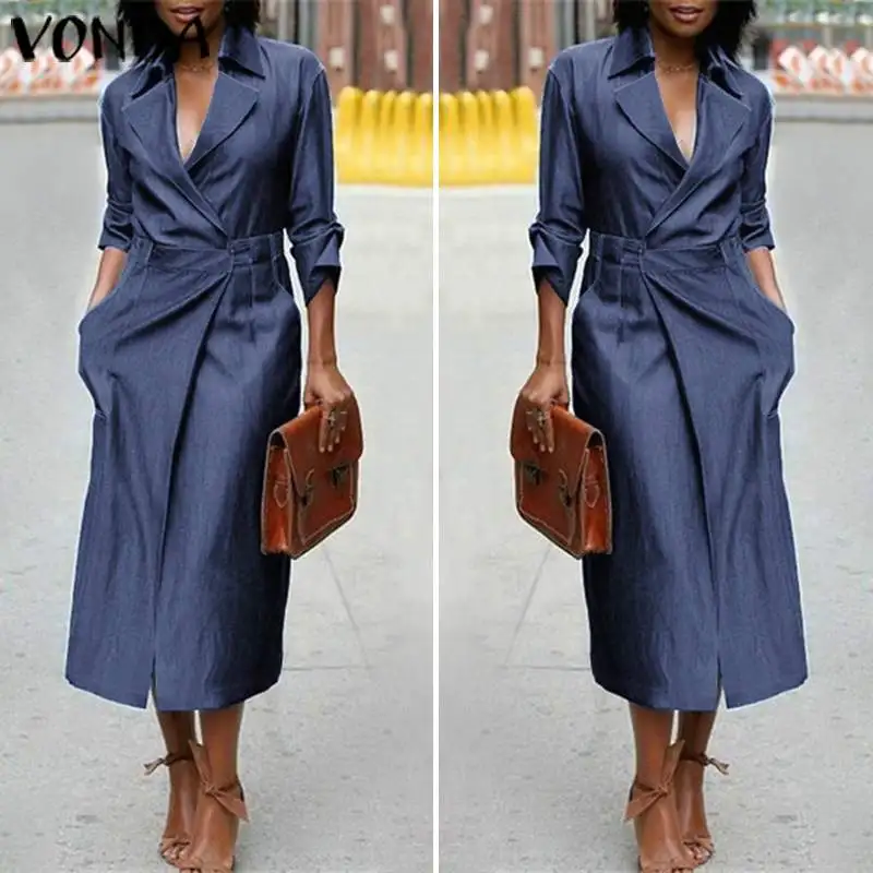 VONDA, свободное платье, осень-лето 2020, сексуальное, v-образный вырез, сплошной цвет, Платья для вечеринок, свободный, длинный рукав, сарафан, пов...
