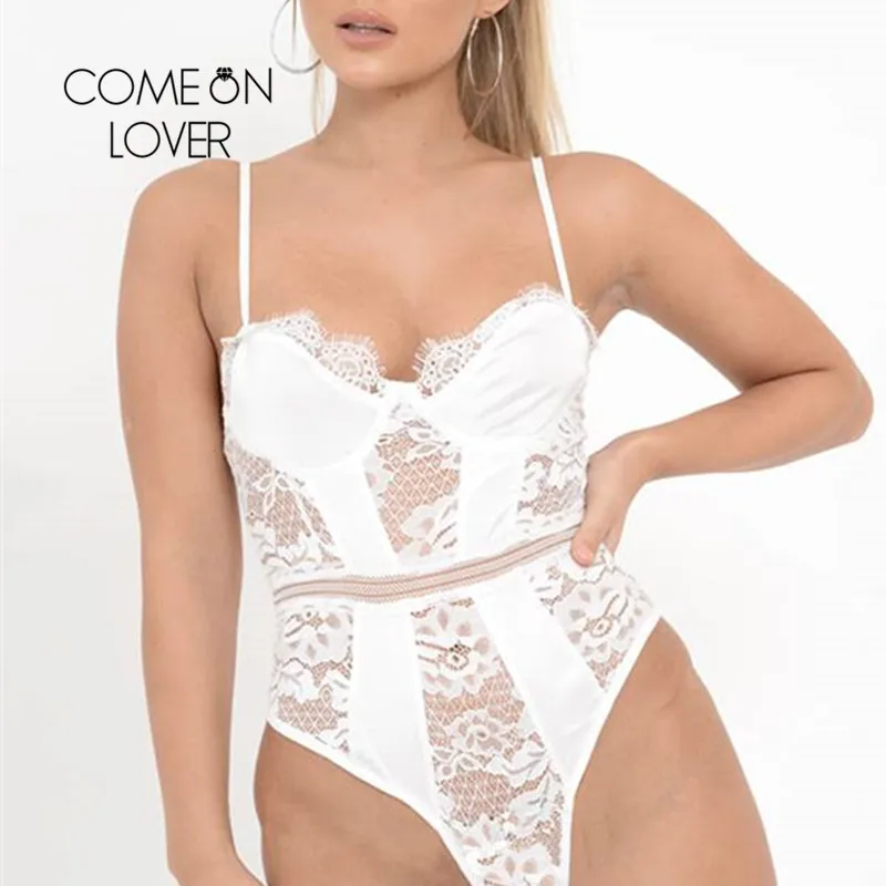 Comeonlover сращивания боди Кружевной Сексуальное Тело Manche Bouffante цветочный Перспектива с низким вырезом на спине Для женщин Модный экзотические ...