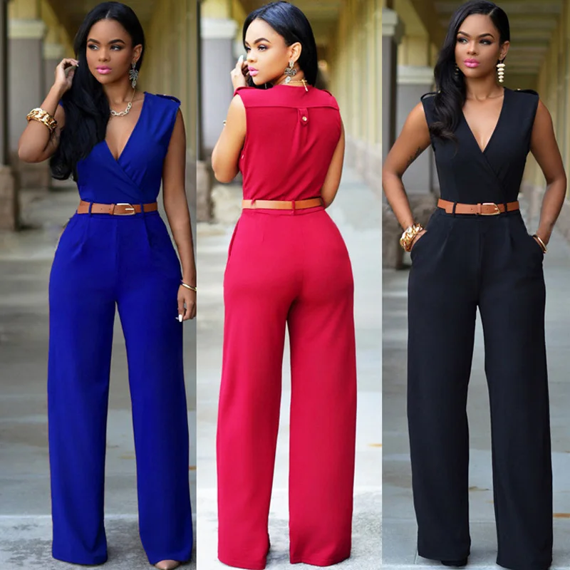 Модный женский комбинезон с v-образным вырезом и карманами, без рукавов, с высокой талией, с широкими штанинами, повседневный летний женский ...