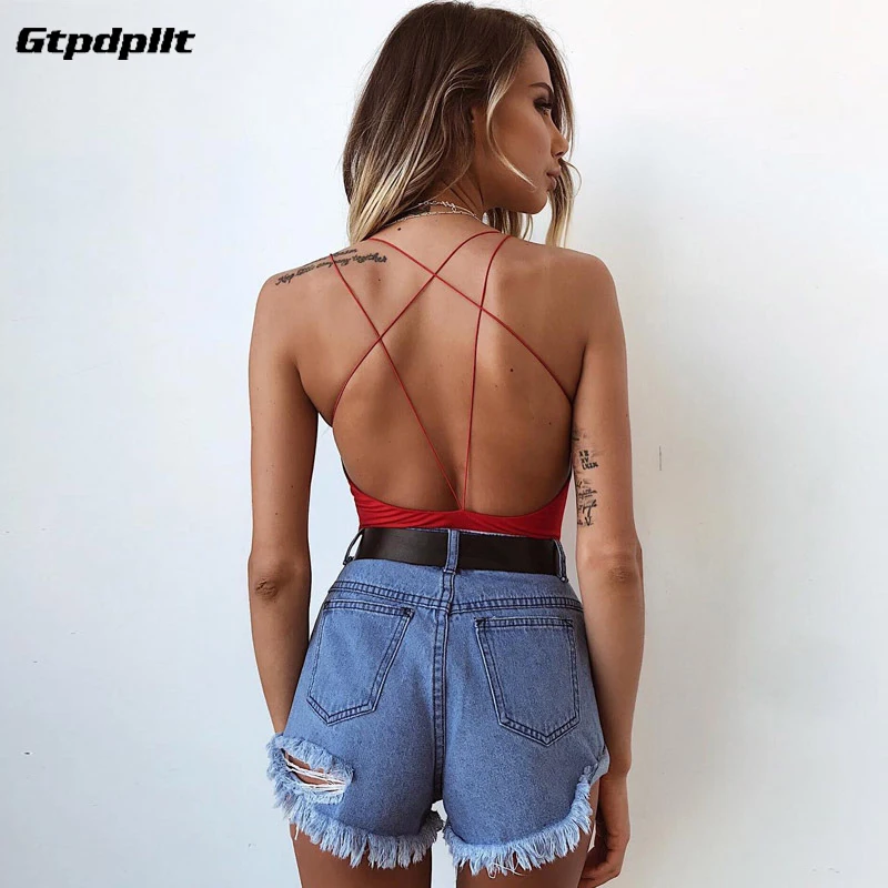Gtpdpllt пикантные летние средства ухода за кожей костюм 2018 для женщин Красный спинки Bodycon feminino Комбинезоны для малышек