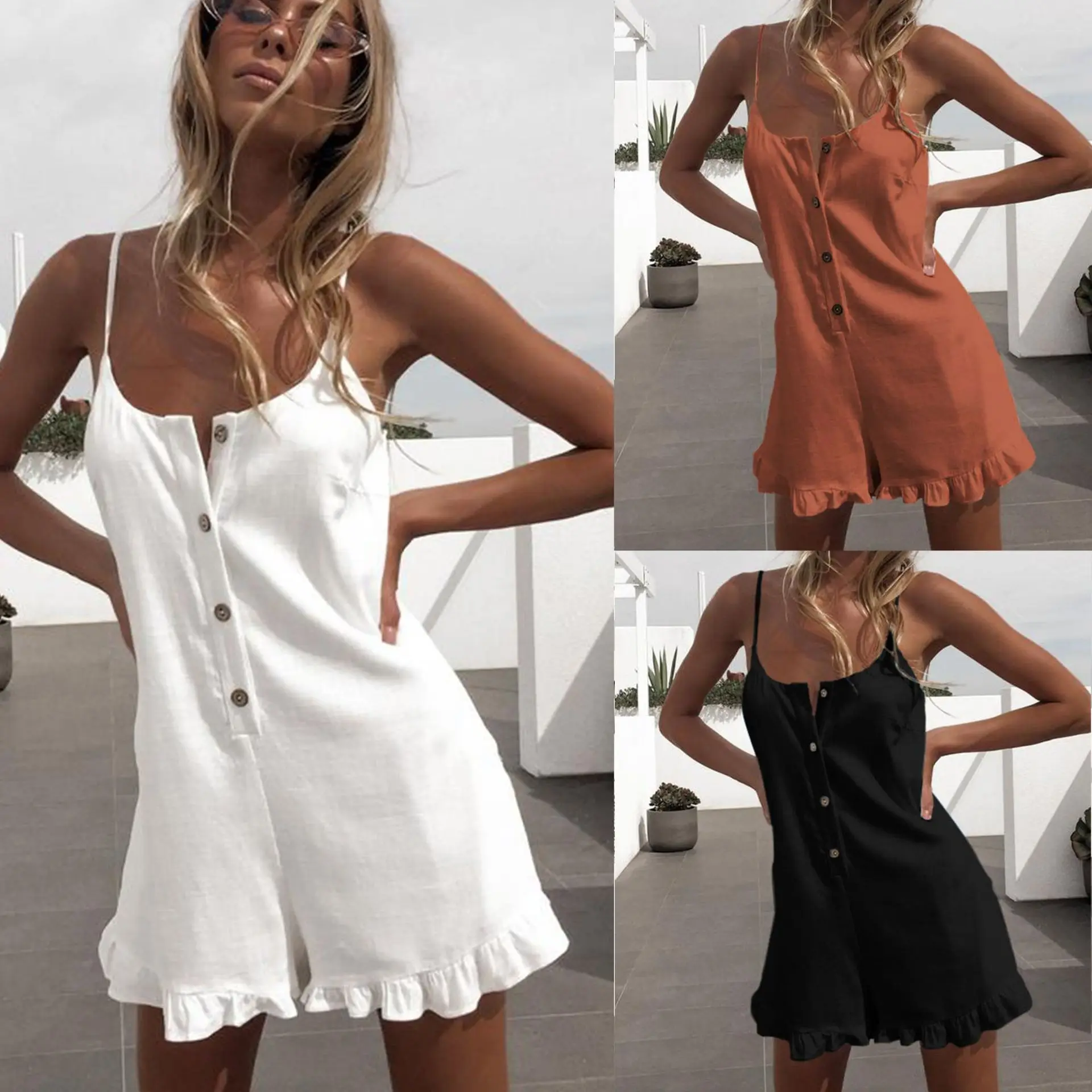 2019 Горячая продажа сексуальные без рукавов Кнопки гофрированные шлейки с открытыми плечами женский костюм пляжного типа Женский комбинезо...