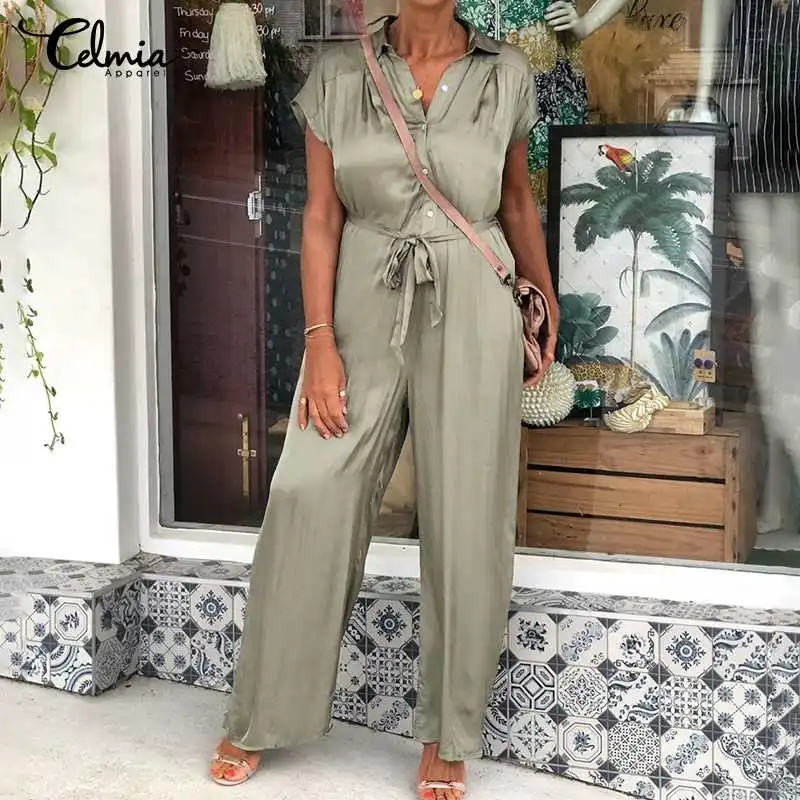 Женские Длинные Комбинезоны с коротким рукавом, элегантные атласные комбинезоны с широкими штанинами размера плюс 7, лето 2020