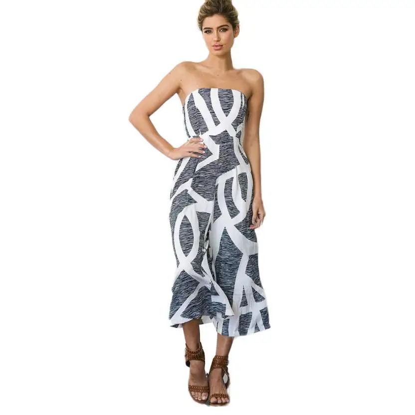 Летнее платье в полоску комбинезон женский без рукавов элегантные Сексуальный Бандаж комбинезон широкими длинными штанинами Повседневное...