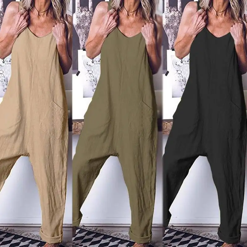 Для женщин Свободные костюм-комбинезон на комбинезон шаровары дамы комбинезон брюки Повседневное широкие брюки пляжные костюмы Jumpsui