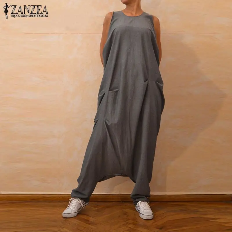 Плюс размеры 5XL комбинезоны для девочек ZANZEA 2019 женские комбинезоны без рукавов мешковатые Pantalon дамские шаровары комбинезоны малышек