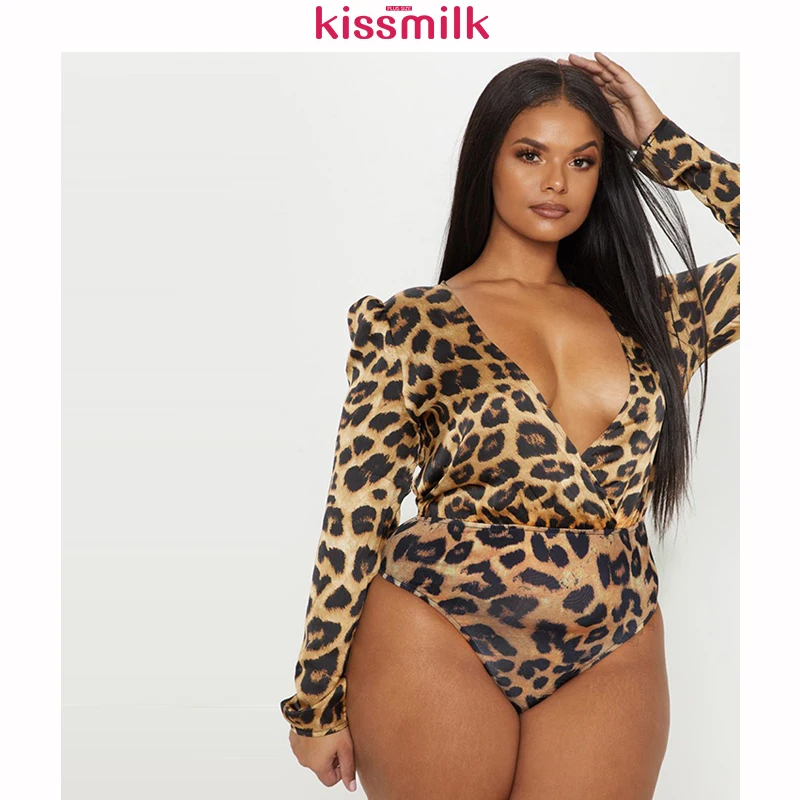 Kissmilk/Новое поступление; Осенняя модная пикантная рубашка с длинными рукавами и глубоким v-образным вырезом и леопардовым принтом; цельнокро...