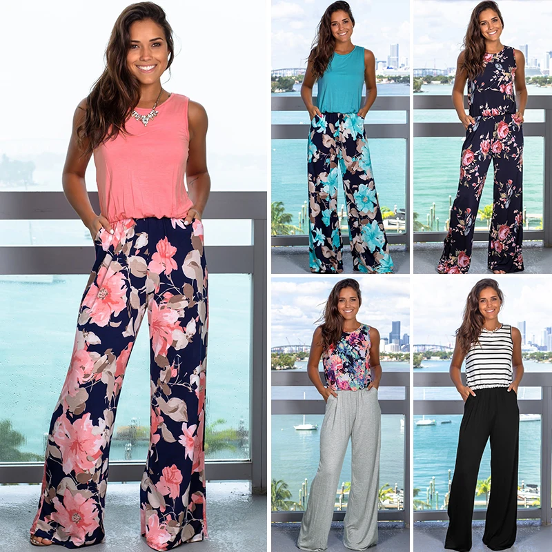 Длинный женский комбинезон с принтом в стиле пэчворк без рукавов, Свободные Комбинезоны прямого силуэта с карманами и высокой посадкой, сво...