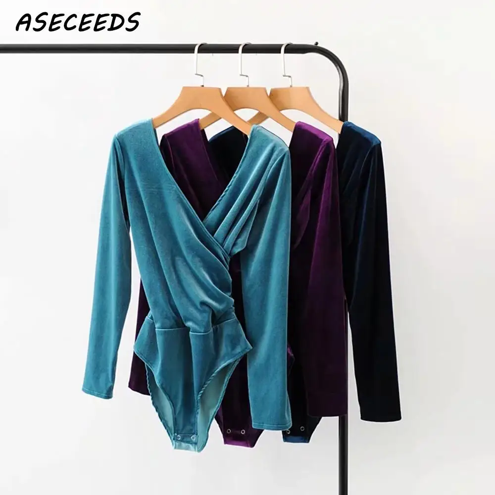 2020 летний сексуальный бархатный боди с v-образным вырезом, черный уличная мода, повседневное боди с длинным рукавом, женский боди, костюм ropa ...