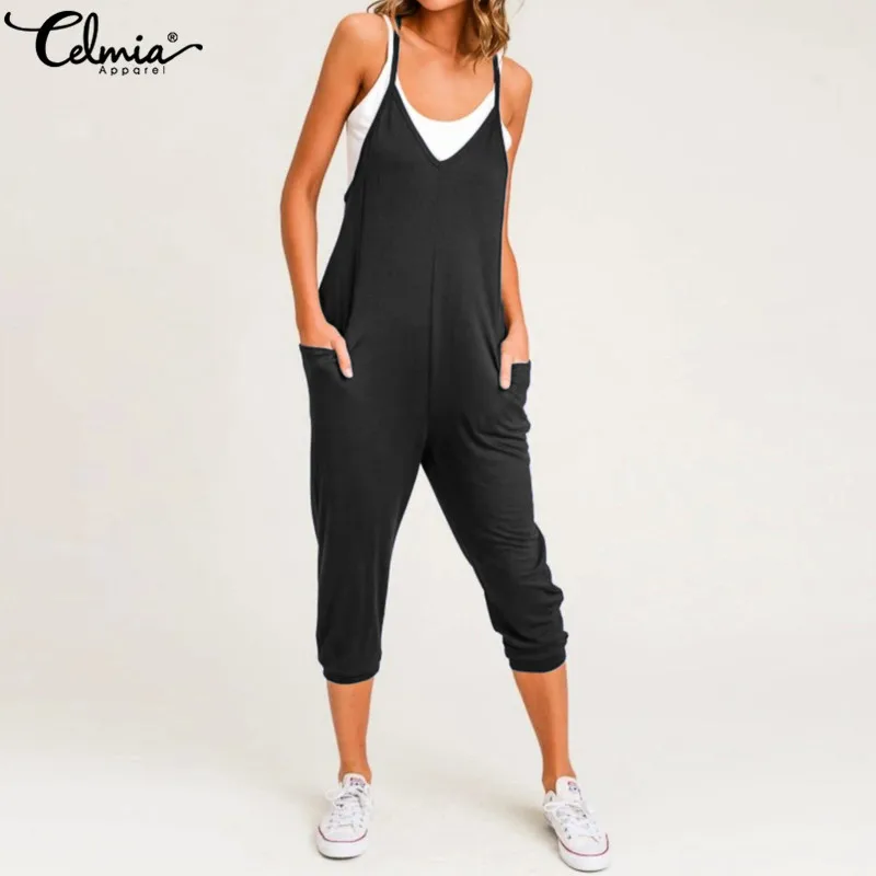 Celmia комбинезоны большого размера для женщин пикантные ремень Комбинезоны для лето 2019 г. Пляжный комбинезон без рукавов повседневное свобод...
