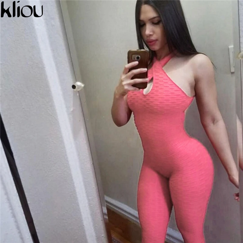 Kliou Новый женский летний эластичный модный длинный сексуальный боди комбинезон с открытой спиной с перекрещенными бретелями спортивный костюм