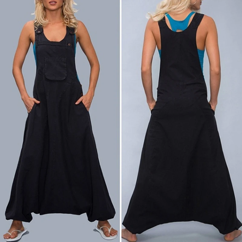Jocoo Jolee женский сексуальный комбинезон без рукавов на бретелях, Повседневный хлопковый льняной комбинезон с широкими штанинами, винтажный комбинезон с карманами, уличная одежда