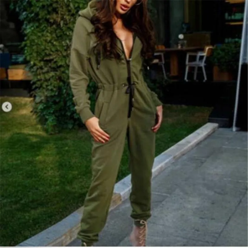 2019 новый модный сексуальный женский комбинезон с длинными рукавами с высокой талией комбинезон с капюшоном уличная одежда drawring Jumpsiut комбин...