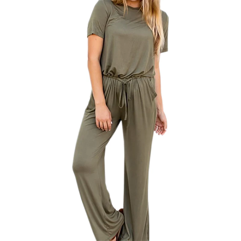 Однотонные повседневное пикантные с открытыми плечами короткий рукав комбинезоны для женщин 2019 Новое поступление для летняя мода