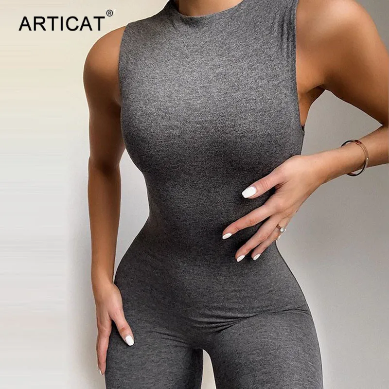 Articat облегающий женский комбинезон с воротником без рукавов 2020, летний Повседневный Облегающий комбинезон для девушек, уличная одежда