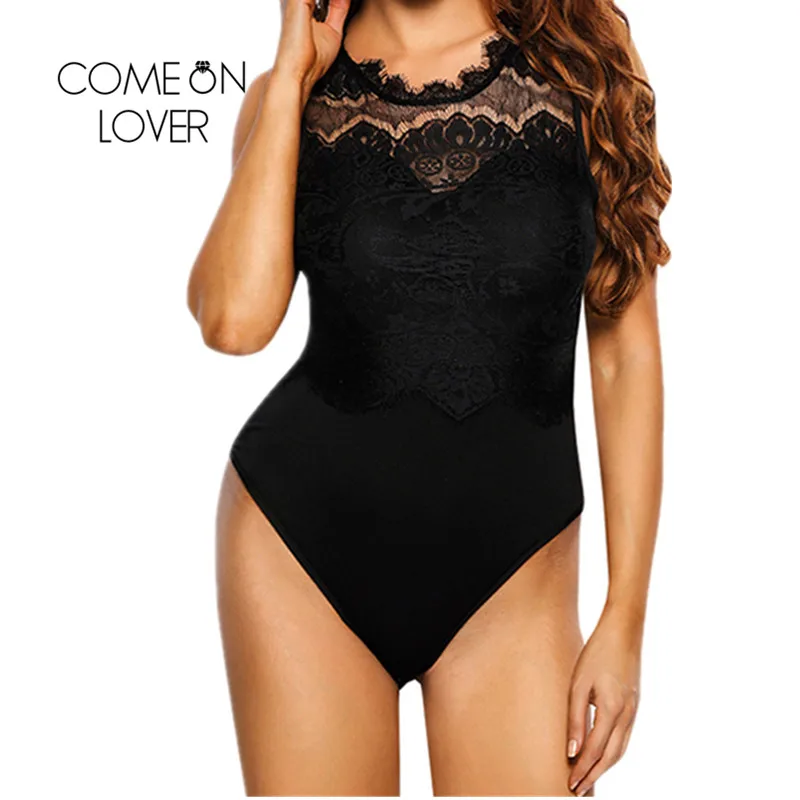 Comeonlover на шнуровке боди Плюс Размеры с высокой горловиной и вырезом сзади Фитнес Bodycon Комбинезон тела Manche Longue Femme RI80472