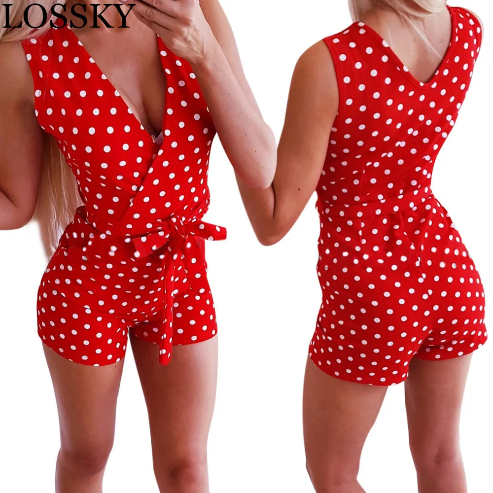 Для женщин в Красной полосой в мелкий горошек, детская юбочка, комбинезоны сексуальные Обёрточная бумага V образным вырезом с коротким рука...