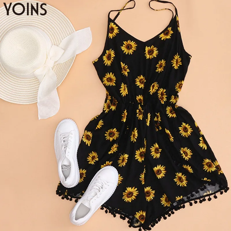 YOINS 2019 летние богемные женские комбинезоны, комбинезон с цветочным принтом, сексуальные комбинезоны с v-образным вырезом, без бретелек, с отк...