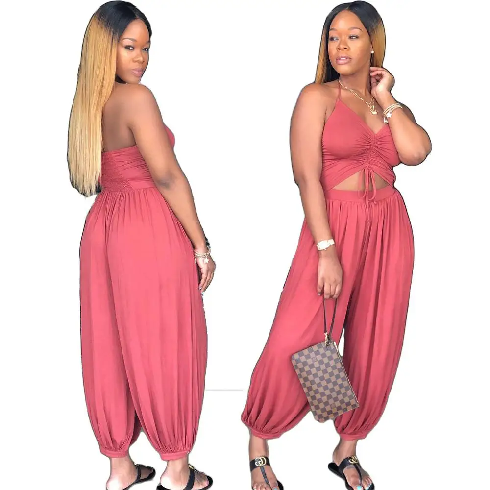 2019 Модные женские комбинезоны, повседневные сексуальные Свободные Комбинезоны без рукавов на бретельках, элегантные широкие брюки, брюки с...