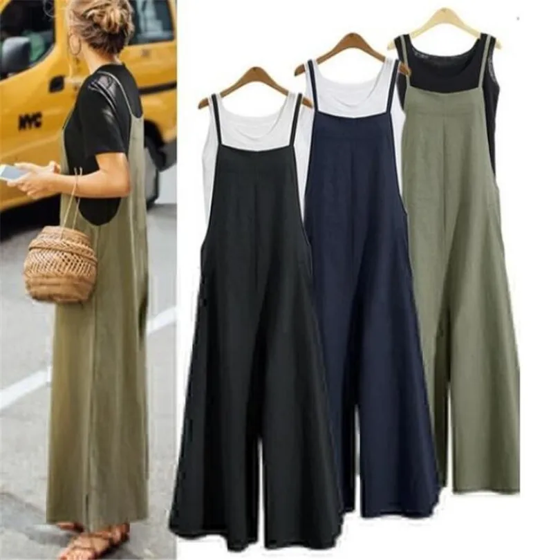 2020 летний женский элегантный Свободный комбинезон больших размеров, Женские повседневные длинные штаны, комбинезоны белого, черного, синего цвета #19628