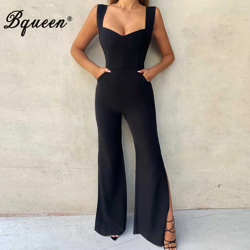 Bqueen женский утягивающий комбинезон сексуальные ремни без рукавов с открытой спиной широкие ноги брюки для клуба, для вечеринки, комбинезон ...