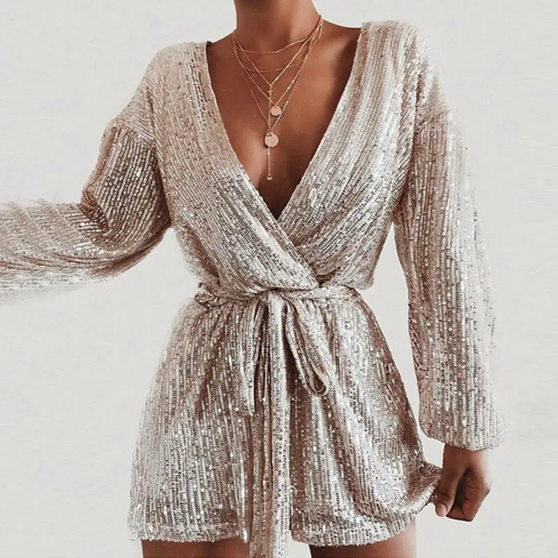 Абсолютно новая Женская Клубная одежда с v-образным вырезом и поясом, свободный цельный комбинезон, бодикон, вечерние комбинезоны, комбинез...