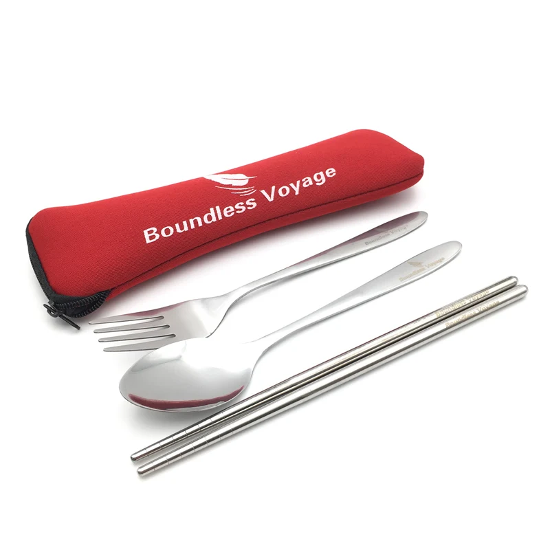 Безграничная Вояж 3 предмета Нержавеющая сталь посуда Кемпинг столовые приборы вилка ложка палочки для еды с неопреновый чехол BV1005