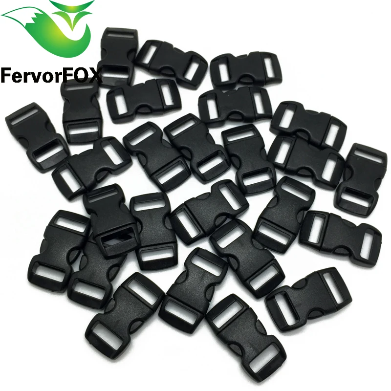 100 шт./лот черный пластик 3/8 "/10 мм изогнутой стороне выпуска Пряжки изогнутые застежка для 550 Паракорды выживания Бретели для нижнего белья т...