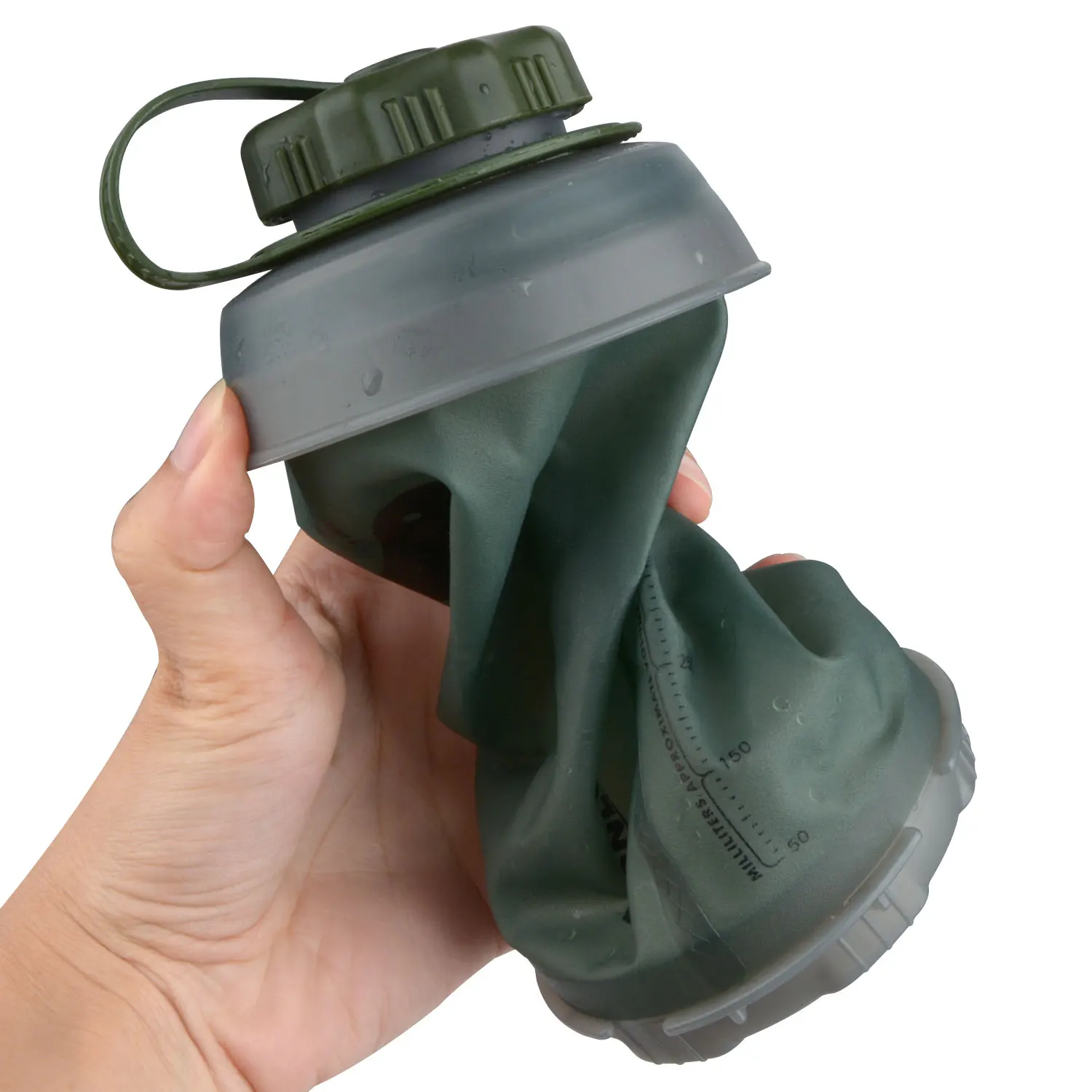 1 шт 750 мл силиконовая складная бутылка для воды Складная спортивная портативная посуда для напитков армейский зеленый цвет дорожные бутылки для воды