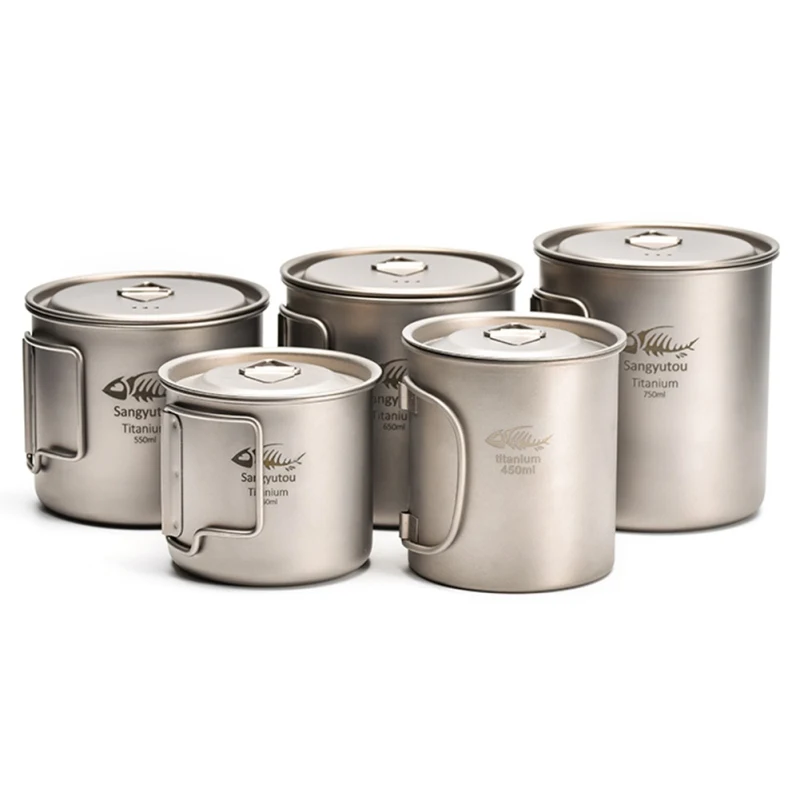 Portable tableware Outdoor Titanium Cup Mug Pots Tableware Camping Cup Picnic Water Cup Mug of Coffee Tea with Lid 300/350/420/5