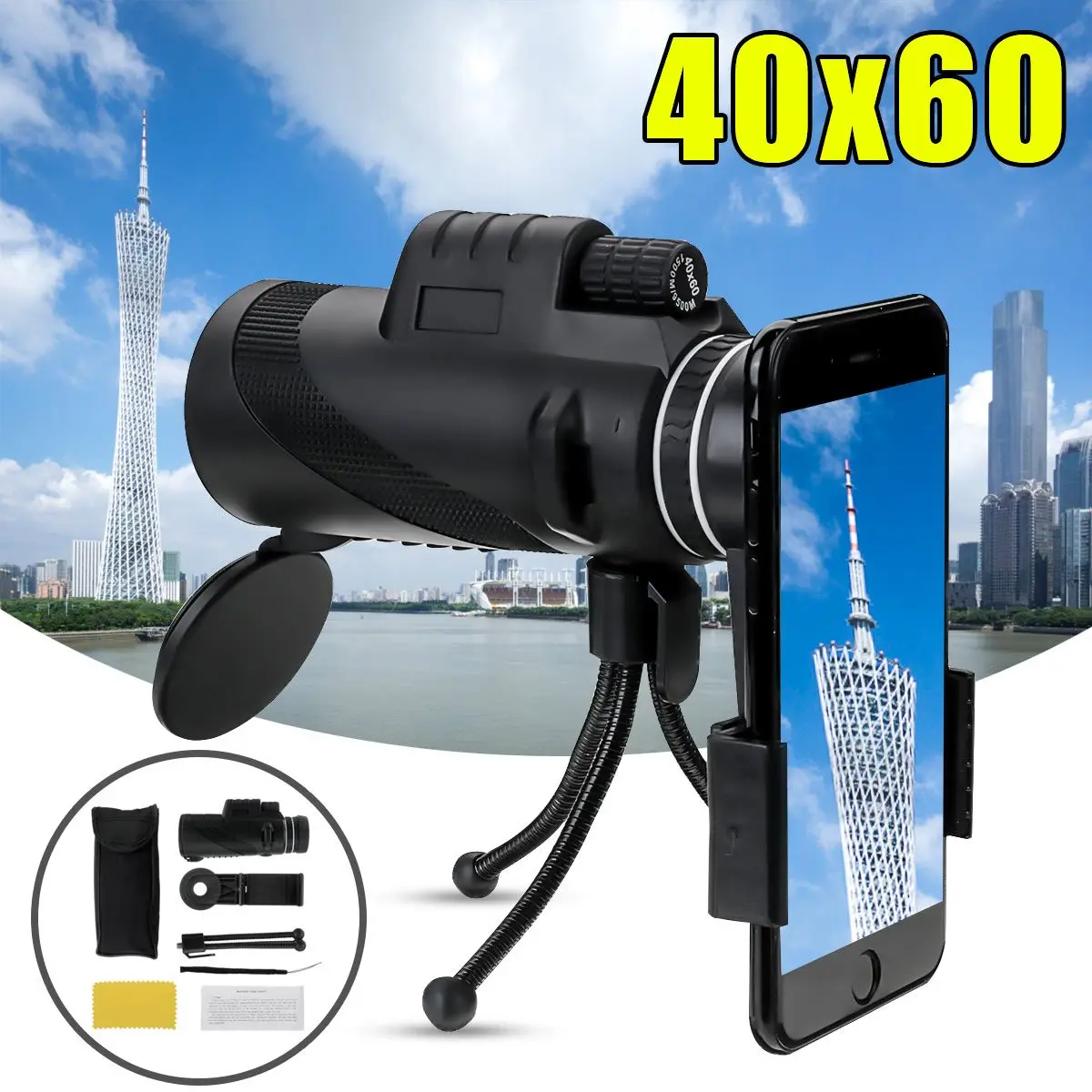 40X60 HD зум объектив оптический мини день и ночное видение Монокуляр телескоп со штативом телефон клип ручной для наружного охоты