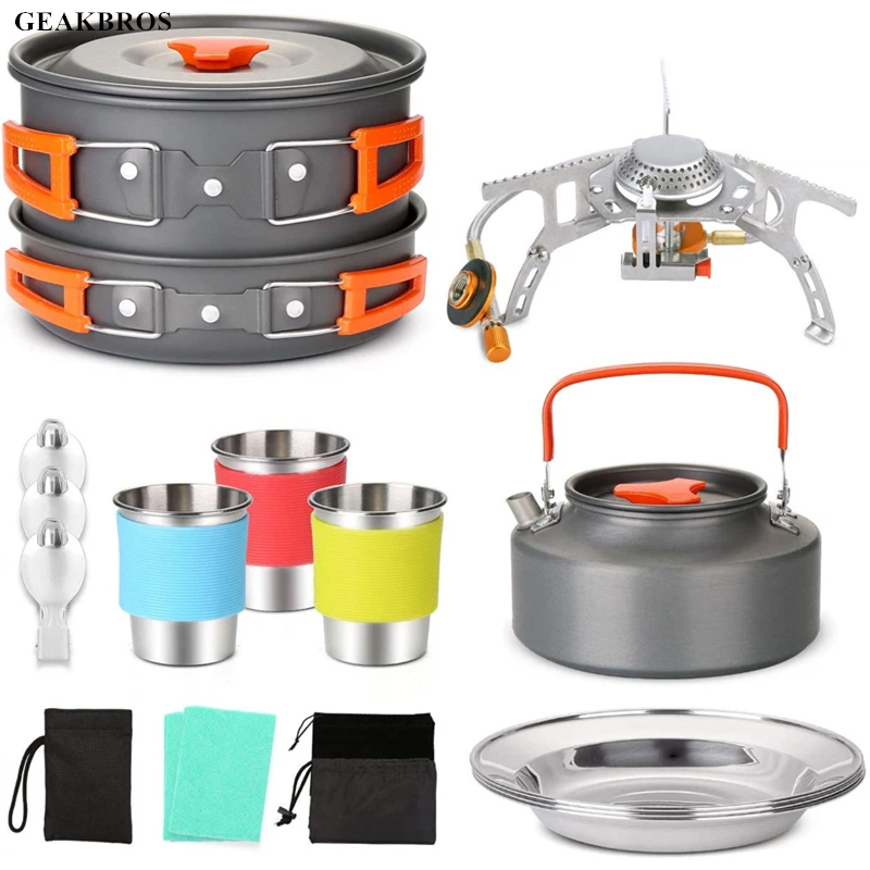 Наружные горшки сковорода походная кухонная посуда комплект для пикника Посуда Складная Ложка Вилка Нож чайник чашки инструменты для 1-2 че...