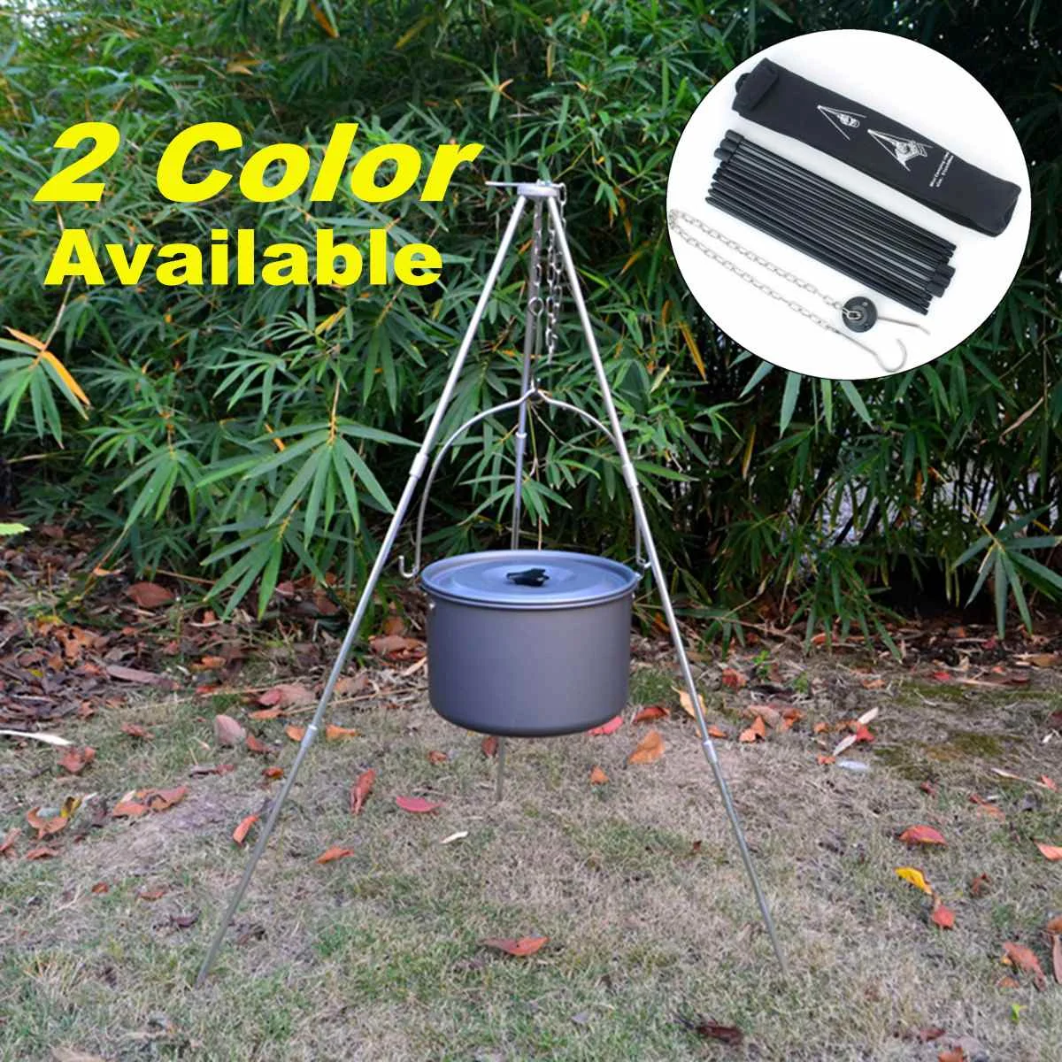 2 цвета Портативный подвесной горшок Открытый Кемпинг Пикник варочный штатив прочный костра пикник горшок Литой Огонь гриль подвесной штат...